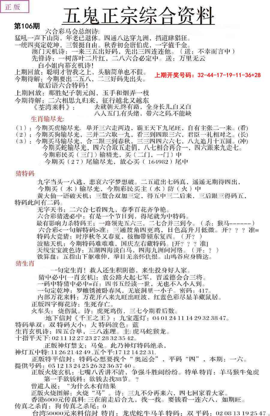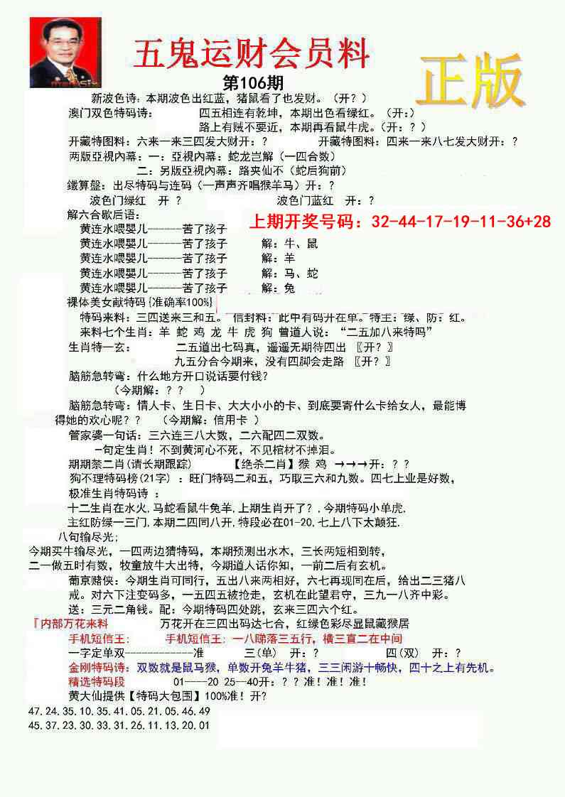 正版五鬼运财会员料